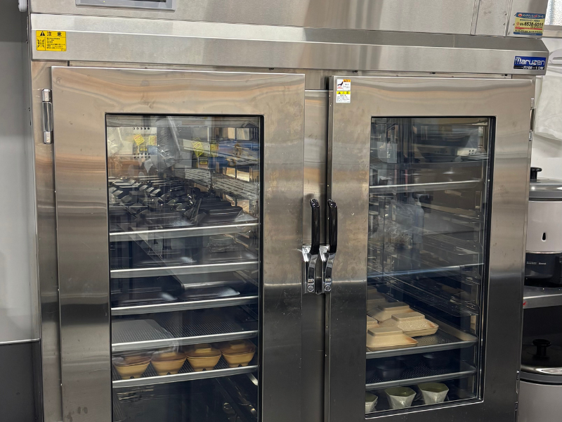 美味しさだけでなく、安心・安全な食事を提供するために、厨房全体の衛生管理にも徹底して取り組んでいます。使用する食器や調理器具は、「食器消毒保管庫」と「器具消毒保管庫」で高温殺菌しており、見えないところまで清潔を保っています。確かなメーカーの機器を使用することで、より確実で安全な衛生管理を実現しています。
