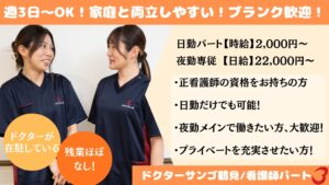 【パート】看護スタッフ募集|未経験・ブランクOK!日勤のみ可!|ドクターサンゴ鶴見(大阪市鶴見区)