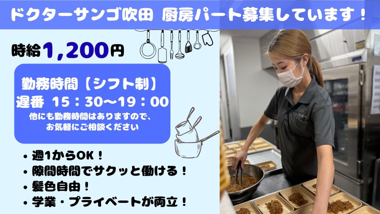 【パート】厨房スタッフ募集|15:30~19:00|未経験・無資格OK!|ドクターサンゴ吹田(吹田市)
