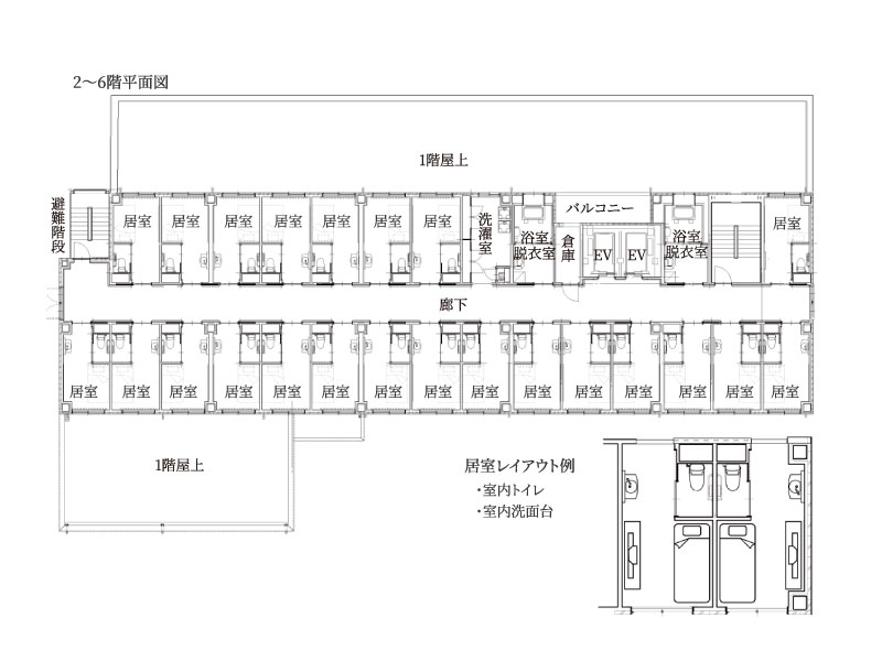 | 居室設備 | エアコン、トイレ、洗面、緊急通報装置 |